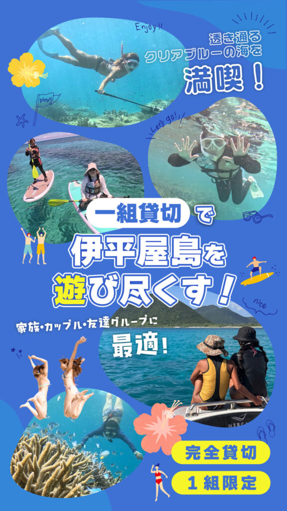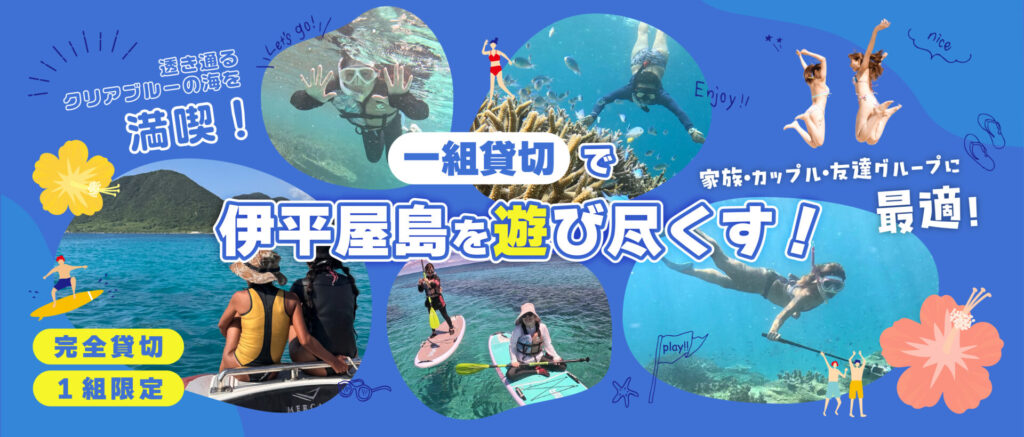 海に潜れば珊瑚礁や熱帯魚、島に目を向ければ見渡す限りの砂浜と南国の木々。伊平屋島に溢れる絶景を貸切で満喫できるのは当店だけ!異国間溢れる雄大な大自然を独り占めしてください。