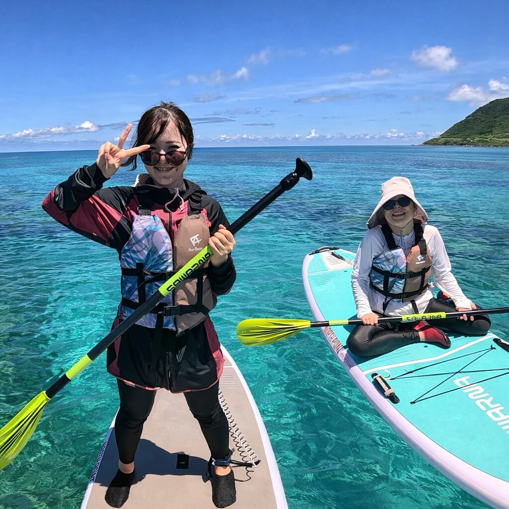 濡れてもよい格好でご参加ください。日焼け対策の為、露出が少ないラッシュガードやスパッツ着用をお勧めします。SUPにはゴムバンドとカナビラが装備されていますので小型の防水バックや防水カメラなど装着可能です。